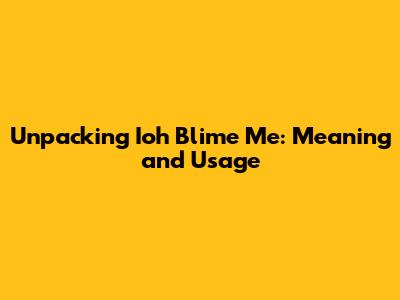 Unpacking 'Ioh Blime Me': Meaning And Usage